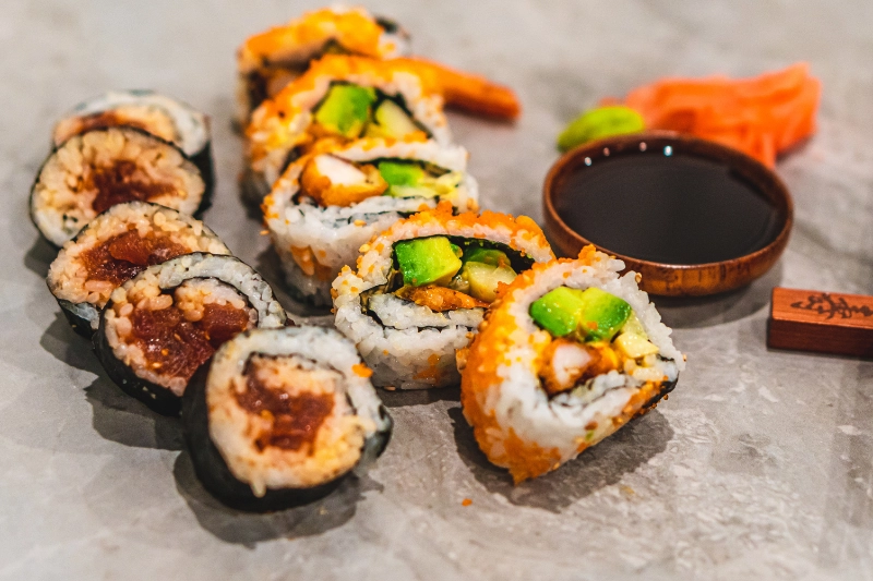 Fluffy and seasoned sushi rice forms the base of every roll.